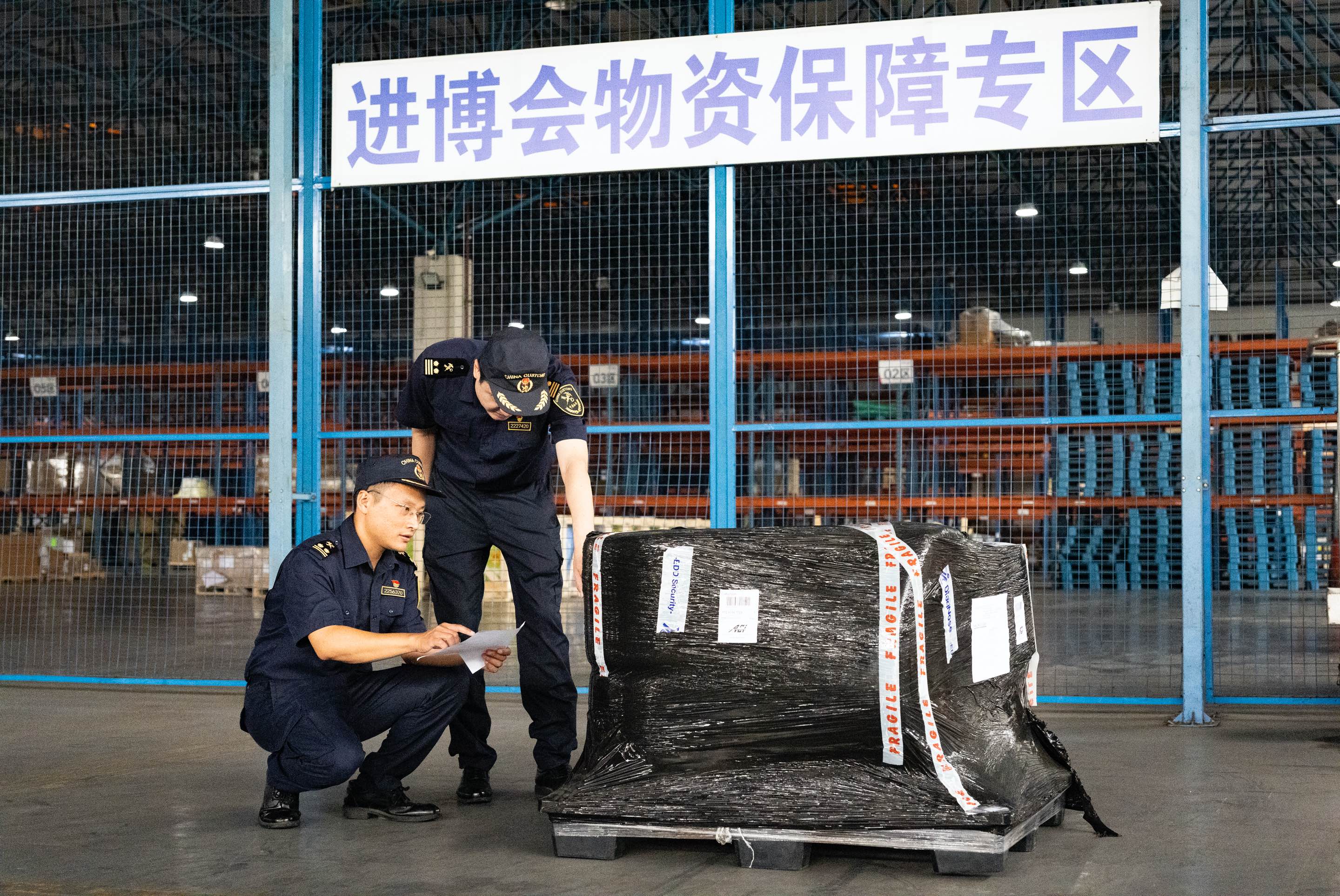 为了服务保障进博会“越办越好”,海关总署在延续往届进博会支持政策的基础上,出台了支持第六届进博会17条便利措施。为了进一步扩大参展范围,创新推出“在评估确认风险可控的前提下,允许无动植物疫情流行国家(地区)未获检疫准入的动植物产品、食品,经特许审批后入境参展”。自便利措施出台以来,上海海关已陆续开展了10余场政策宣贯会,有效加大政策供给力度。“我关持续加大制度创新和科技赋能力度,高标准高质量做好本届进博会各项筹备工作,开发上线了移动巡馆设备新功能,拓展AR眼镜辅助监管新技术应用,将实现对参展食品、农产品原产国家和地区准入情况的自动甄别。”上海会展中心海关副关长张正友介绍。
