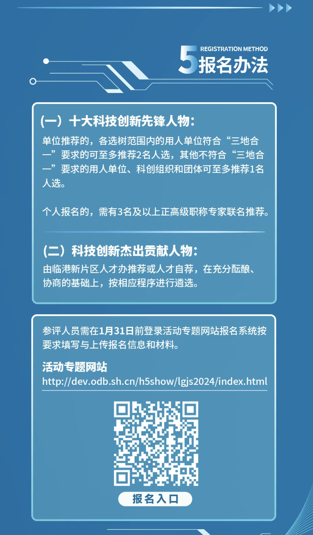 为进一步激励广大科创人才争当新时代科技创新先锋,推动科技、人才、创新融合发展,2024年1月—3月,上海市科技系统人才工作领导小组办公室和中国(上海)自由贸易试验区临港新片区人才工作领导小组办公室联合指导发起2024临港新片区“十大科技创新先锋人物”和“科技创新杰出贡献人物”选树活动,推动广大科创人才积极探索实践、大胆创新创造、深耕临港发展。