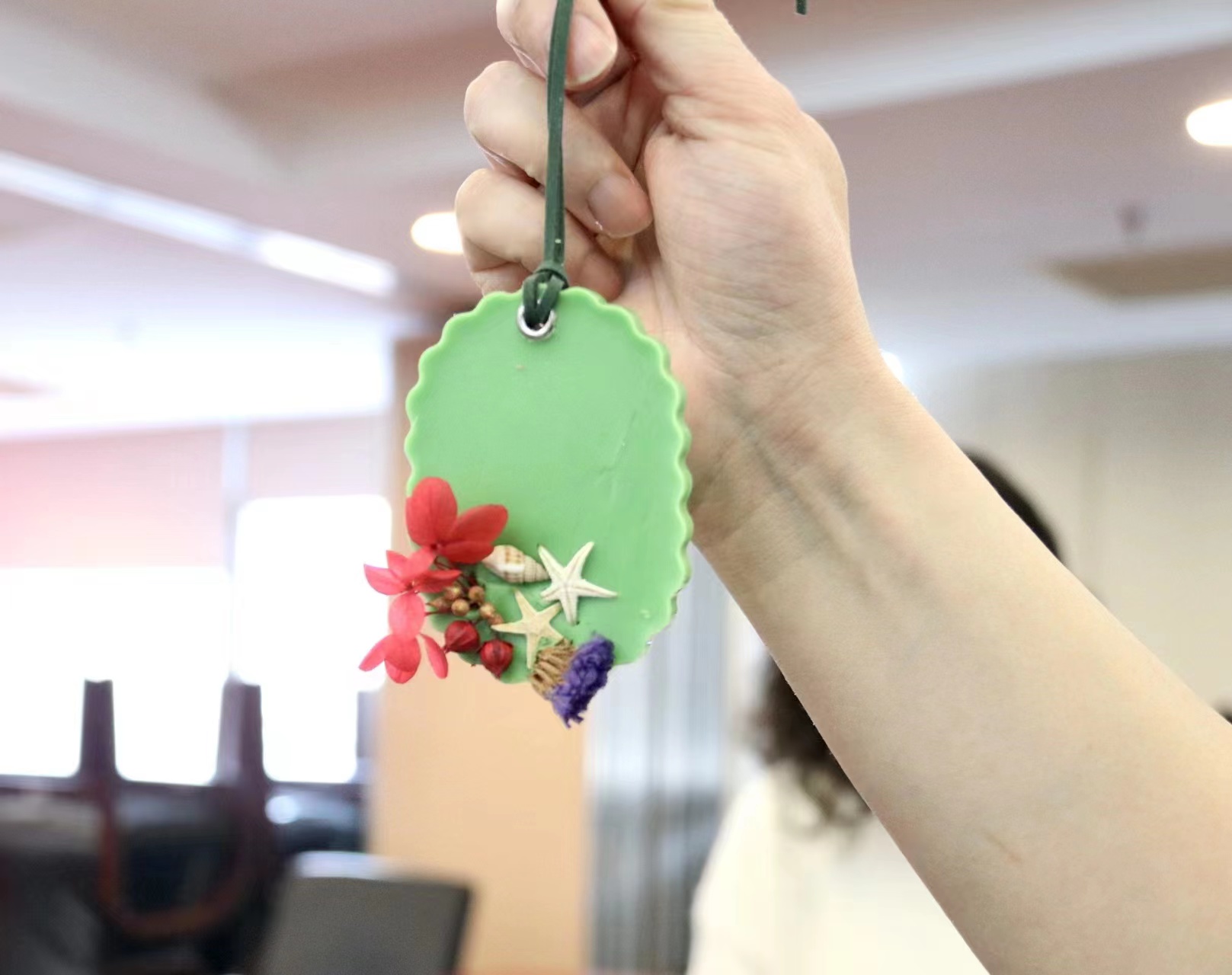 也有公司组织手工活动,比如自己做一个干花蜡片。