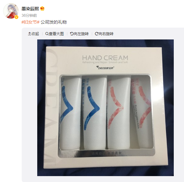 除了鲜花,护手霜也是不少公司的标配礼物。