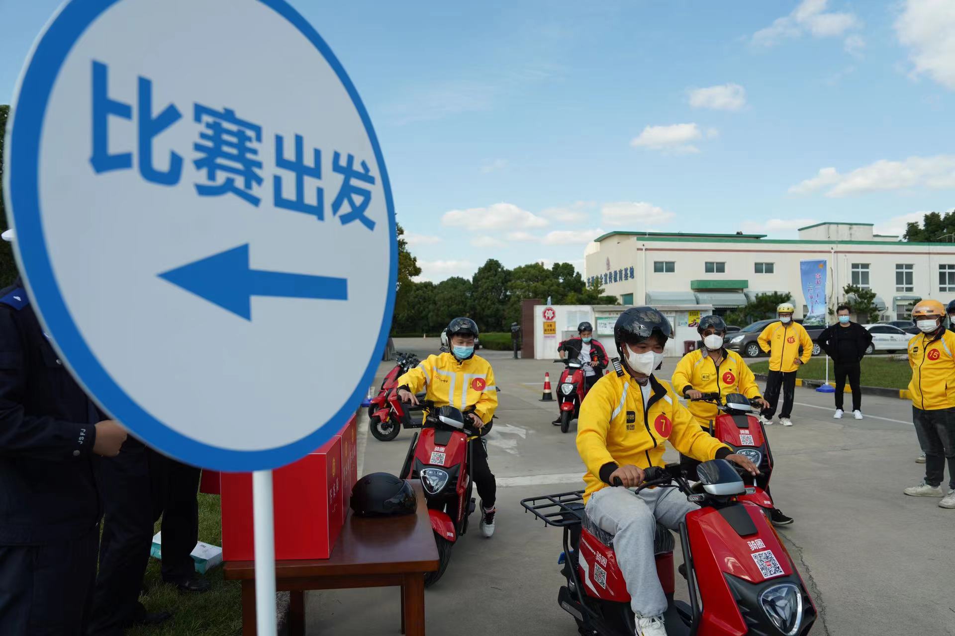 10月25日下午,一场别开生面的比赛在上海金山亭林驾校的训练场上展开,21位来自顺丰、饿了么、美团的快递外卖配送员,以学习二十大精神、交通安全知识和具体实操相结合的方式奔驰在“劳动创造幸福”的阳光赛道上。