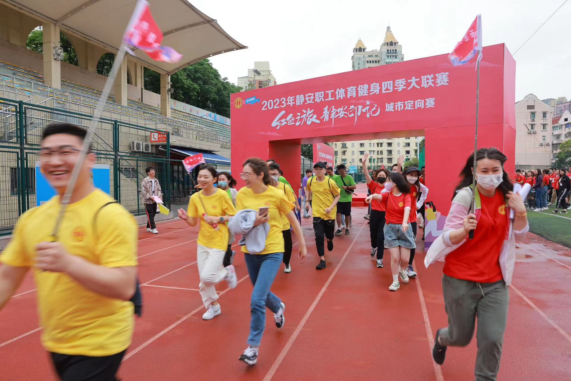 2023年静安职工体育健身四季大联赛——城市定向赛,日前在静安区工人体育场开赛。参赛的40支队伍、200名运动员以体育运动的方式,打卡静安工运遗址和红色地标,缅怀革命先烈,回顾革命历史,传承革命精神。