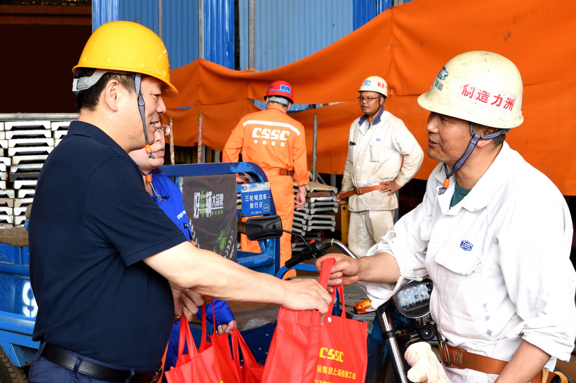 上海船舶工会高度重视夏季劳动保护和防暑降温工作,聚焦重点区域、重点项目,特别是露天作业岗位和高温作业岗位,以及农民工人数较多的岗位,多层次多方位组织开展“送清凉”活动,向一线职工发放了58000份防暑清凉用品,在基层企业办公楼宇和生产现场加装了10台AED自动体外除颤器。上海船舶工会主席顾奚带队赴江南造船、沪东中华、外高桥造船、中船动力、中船九院驻长兴二期项目部等生产现场,慰问奋战在高温一线的员工,感谢他们在酷暑天中依然坚守岗位,辛勤工作。