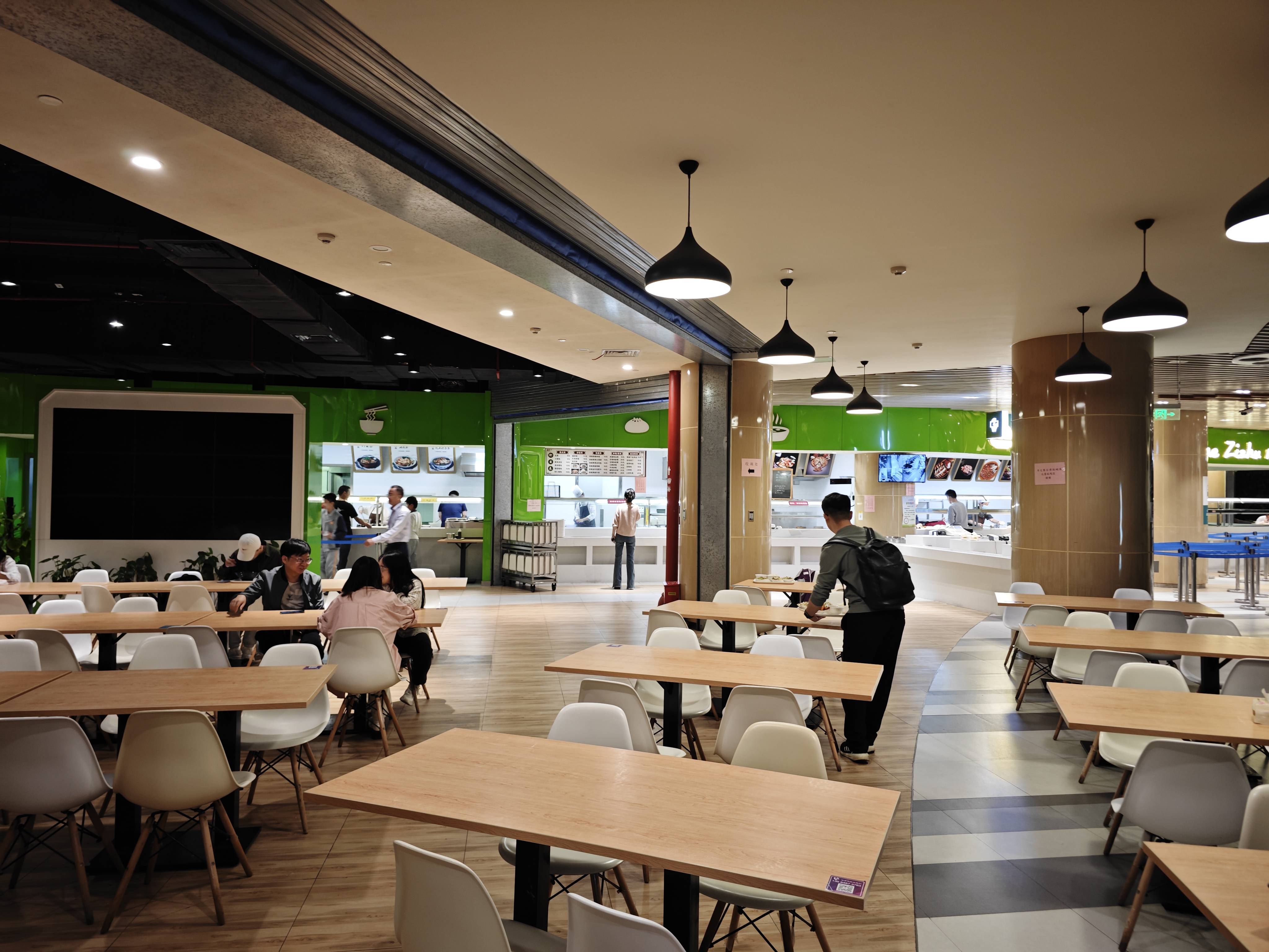 晚上6点,已经是不少企业下班的时候,位于闵行区紫竹高新区的紫叶广场三餐厅里,陆续有职工前来就餐。每晚5点至7点,是紫竹高新区信息数码港有限公司配套服务部运营经理王彬忙碌的时候,餐厅每晚要为约200名职工提供饭菜、面食等晚餐。记者看到,偌大的餐厅里大约有40人正在就餐,多为结伴而来,部分职工背着背包,显然已经下班。王彬告诉记者,园区职工潮汐式特点明显,晚上下班后职工大多会回家吃饭,留在园区的人并不多,“而中午我们要开放两个餐厅,为1700人提供服务。”王彬坦言,6点半之后只有零星的职工前来就餐,因此餐厅会在7点结束营业。“大多数人还是选择回家吃饭,再晚下班的人就会去周边的便利店等解决晚餐。”