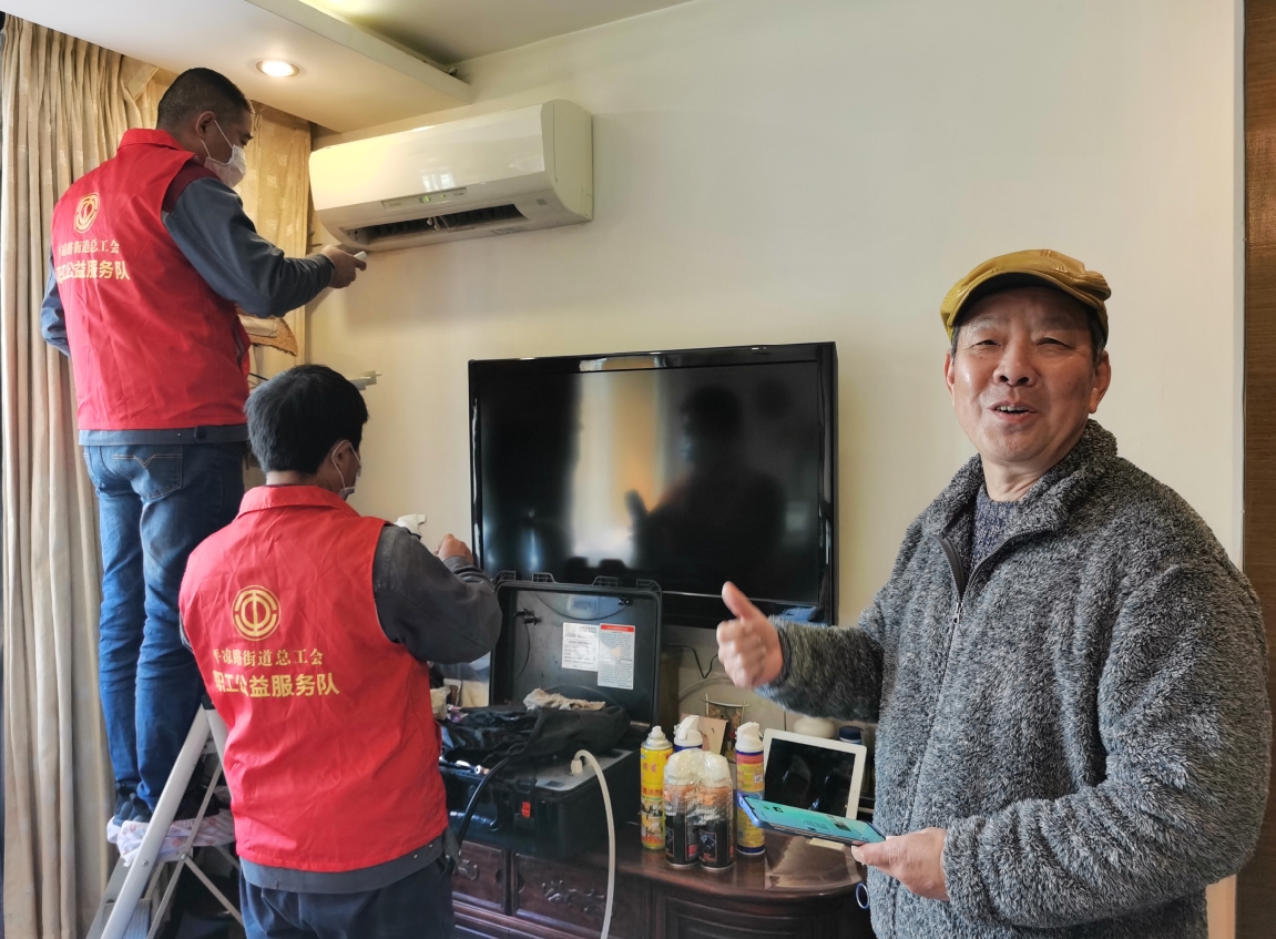 窗户敞亮了,空调干净了,脱排油烟机洗去了油污,春节前夕,杨浦区平凉路街道托管的10位劳模家里焕然一新,背后,街道总工会组织的一支平凉公益志愿服务队正在行动中。