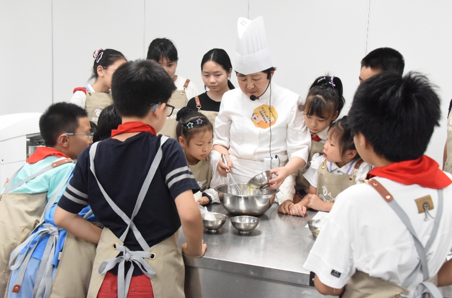 孩子们在第一站聆听了上海市劳模、轨道交通自动售检票系统研发专家周向争讲课,周向争以地铁进出站闸机为例,介绍了自动售检票系统的产业现状、系统架构等内容。孩子们第二站来到国务院特殊津贴专家、中国轻工系统“大国工匠”、上海工匠干文华的工作室,在烘焙大师干文华的指导下动手制作提拉米苏。从奶油打发到包装,同学们体验了烘焙的全过程,感受到了劳动的快乐和成就感。