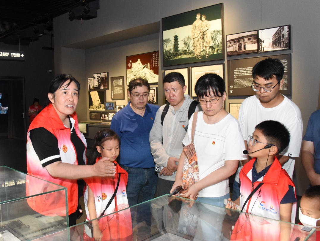 近日,徐汇区总工会和龙华烈士纪念馆联合推出的“跟着劳模龙陵讲解”志愿讲解日迎接暑期场。当天,除了全国劳模苏嵘,市劳模李培蕾、周晴、余美香、尚艳华、冯知洋,市五一劳动奖章兰凡,区劳模陈俊峭等8位劳模先进为参观者进行讲解、情景演绎外,现场还活跃着新一批中小学生志愿者的身影,在这堂形式多样的“大思政课”里,同学们在劳模的带领下正逐渐成为主角,他们通过讲解一次次接受烈士精神的洗礼。