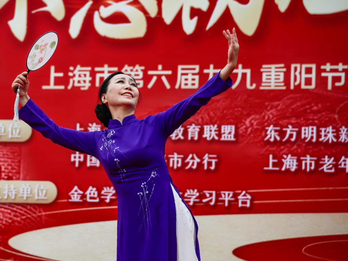 10月14日,“不忘初心庆华诞·长者风范 天伦之乐——上海市第六届九九重阳节”展示活动在东方明珠举行。上海老年人用精彩才艺庆祝党的百年华诞,这也是上海老年教育蓬勃开展的生动缩影。