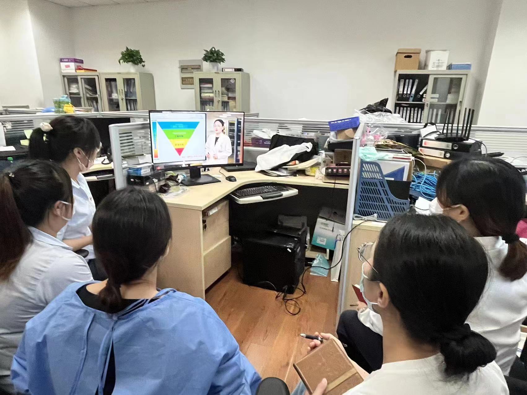 蒋良芝结合《新型冠状病毒肺炎防控方案(第九版)》应知应会和市、区疫情防控工作领导小组办公室相关精神,从底线思维、精准防控、有效通风、科学防护、清洁消毒、医疗废物、标准预防、额外预防等八个关键词出发,为观众们带来一堂别开生面的疫情防控专项培训。