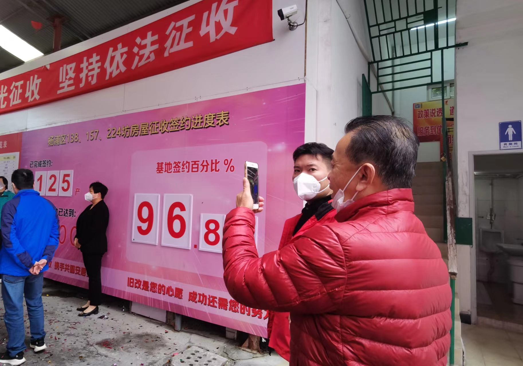 11月22日,杨浦区三个零星地块旧改项目同步启动“二次征询”签约,共涉及11个零星旧里地块。签约首日,三个基地均高比例达到协议生效条件,其中,135街坊签约率达到100%;138、157、224街坊签约比例为96.89%;52、68、70、35、77、193、95街坊基地签约比例达到了93%。期盼已久的居民们相聚在一起共同见证这一喜悦的时刻。这也意味着杨浦今年零星二级旧里以下房屋改造任务圆满完成。