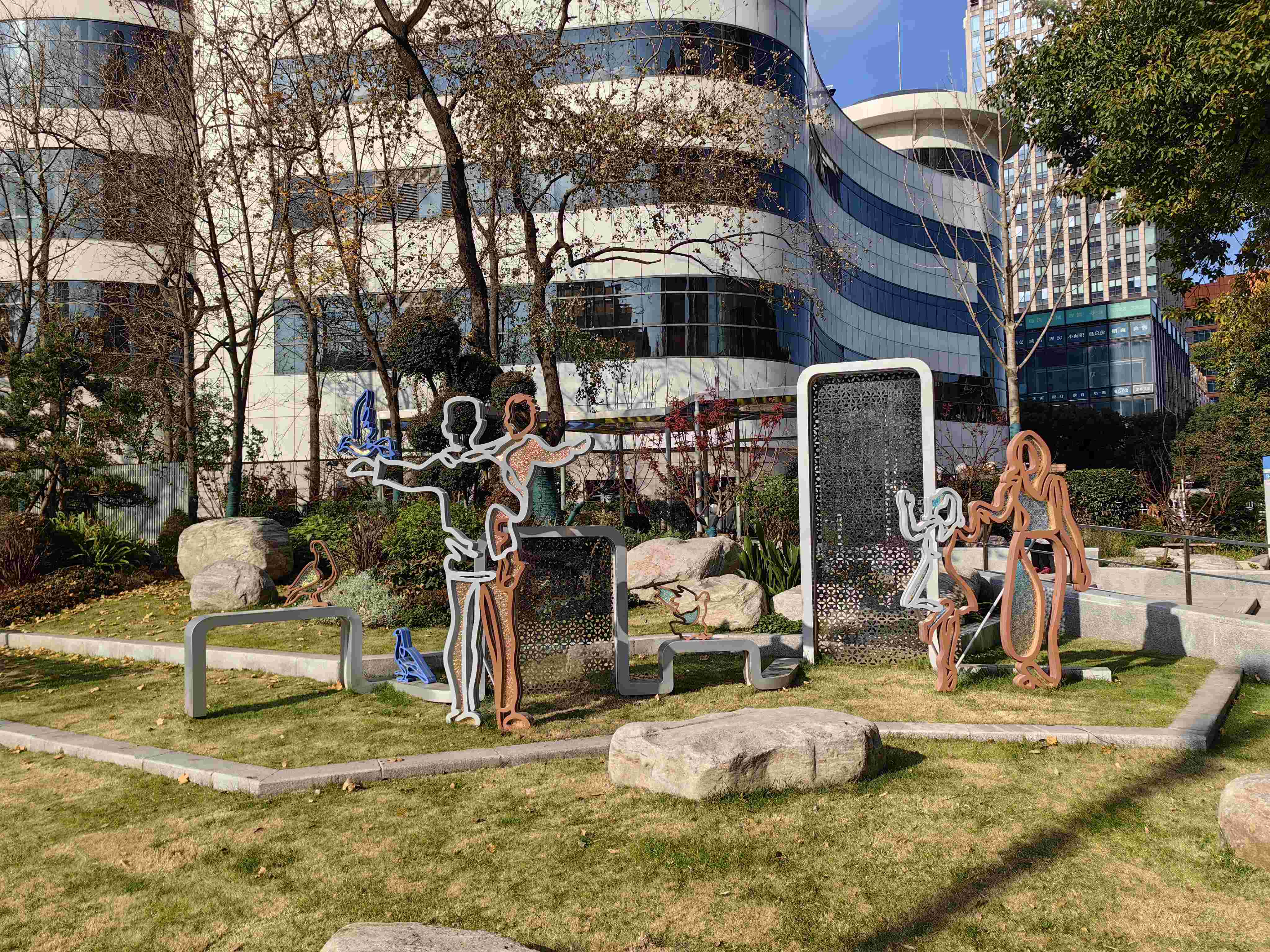 为了打造更为亲近、更为温馨的街区,设计还利用了现有的优势——大量大型乔木及滨河闲置空地,打造专属于株洲路的“15分钟社区生活圈”。 设计中对沿线的绿化进行了局部打开,增加了多个休闲场地,并使用便民漫步道将这些休闲场地进行串联,让来往与此处的行人、居民散步健身的同时能有一处休憩地。每个休闲场地中的座椅也充分考虑到居民的体验感、使用感,座椅的整体使用高分子材料,夏凉冬暖。