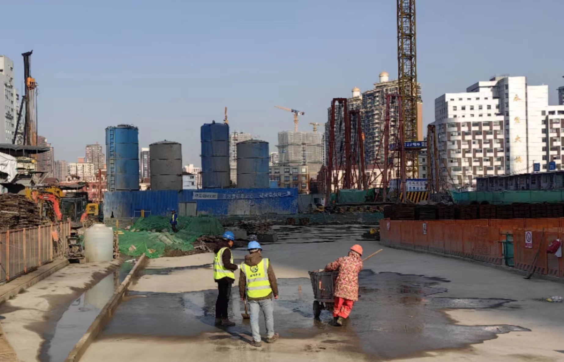 目前,A2坑桩基围护完成,A1坑桩基围护完成70%。基坑所处的位置在地铁50米保护区范围内,需要加快施工进度完成底板混凝土浇筑,将施工影响降低到最低,施工单位决定今年春节期间继续开工建设。