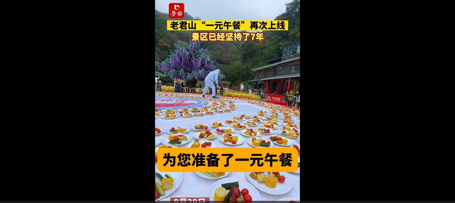 老君山“一元午餐”再次上线,景区已经坚持了7年