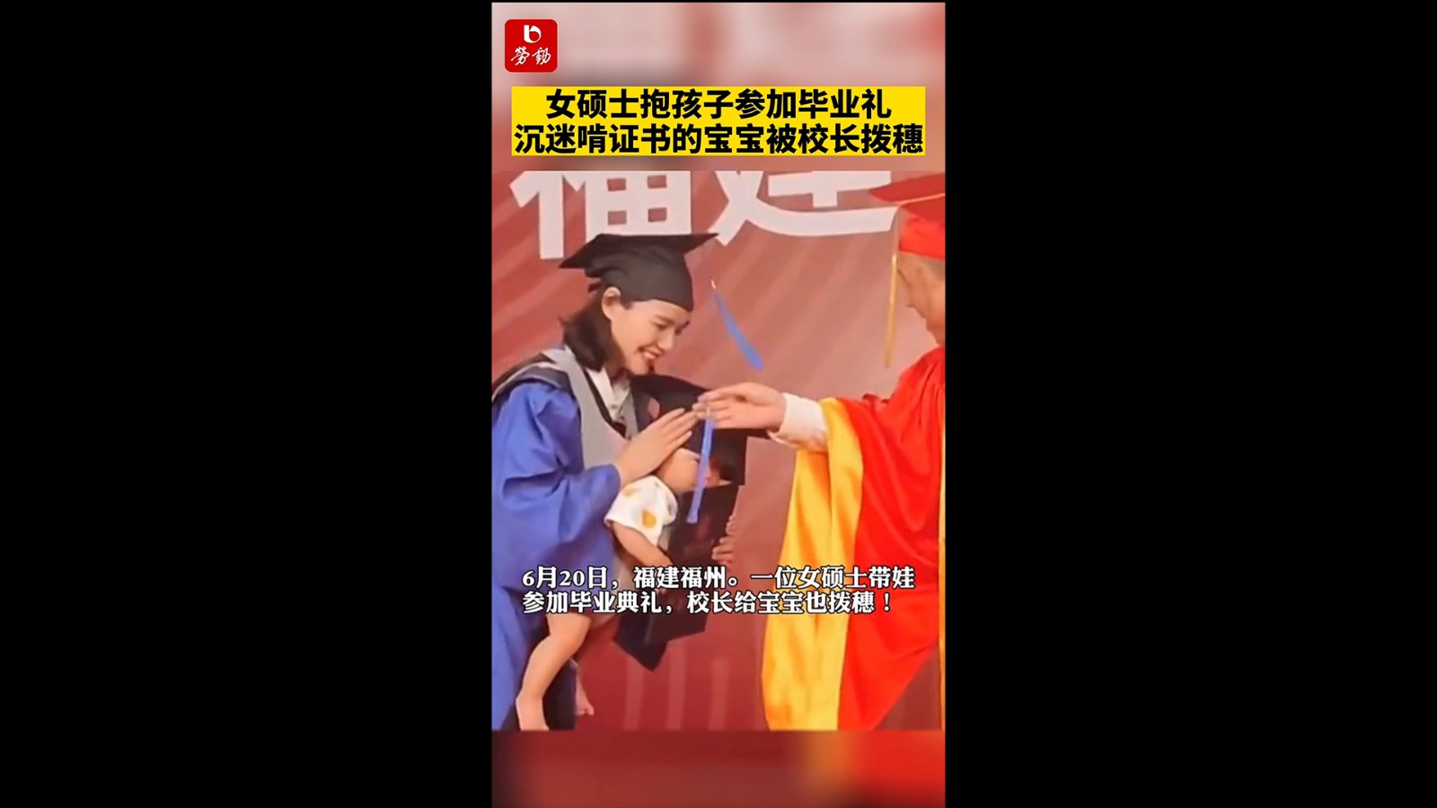 女硕士抱孩子参加毕业礼,沉迷啃证...