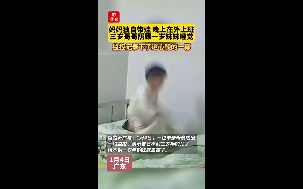 妈妈独自带娃,晚上在外上班,三岁哥哥照顾一岁妹妹睡觉。 监控记录下了这心酸的一幕