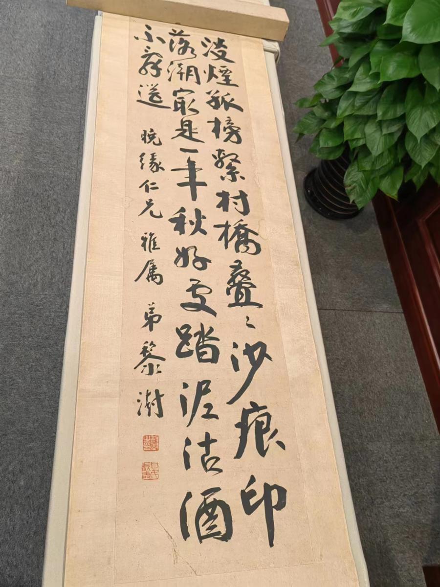 第二件是民国知名政要人物黎澍先生写给李书城的书法作品,写的是陆游的《村饮》一诗,落款处“晓缘仁兄”即指李书城先生。该作品距今已有百年历史,但仍保存完好。