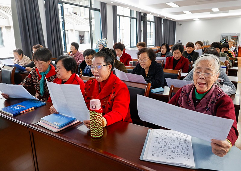 采访中发现一个有意思的现象是,“夕阳红”班里很多是清一色的“半边天”。而根据《中国老年教育发展报告(2019-2020)》,老年大学在校学员男女比例约为3:7。