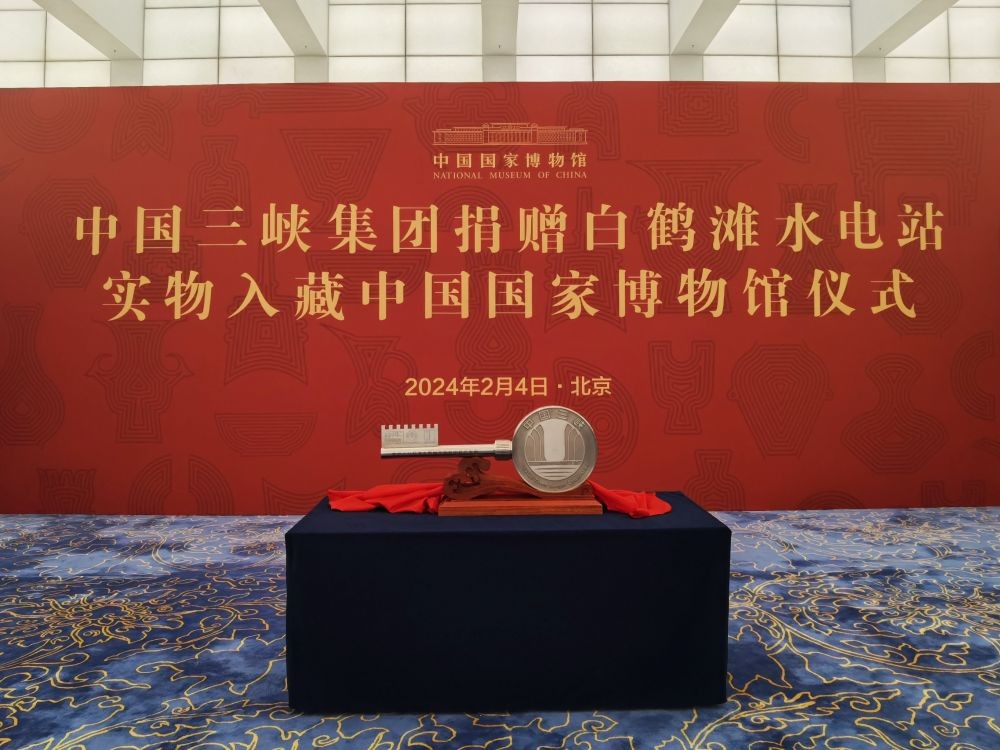 中国国家博物馆近日举行中国三峡集团捐赠白鹤滩水电站实物入藏仪式。记者从仪式上获悉,中国三峡集团决定将白鹤滩江底石切片、首批机组发电仪式入场证以及自主研发的新型低热水泥样品等110件/套实物无偿捐赠给国博。
