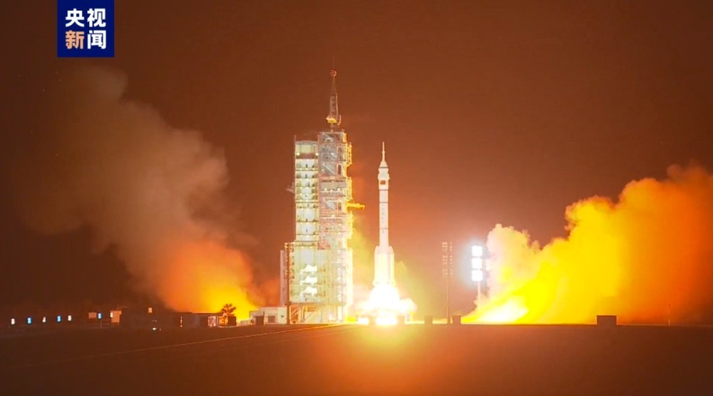 搭载神舟十八号载人飞船的长征二号F遥十八运载火箭在酒泉卫星发射中心点火发射。
