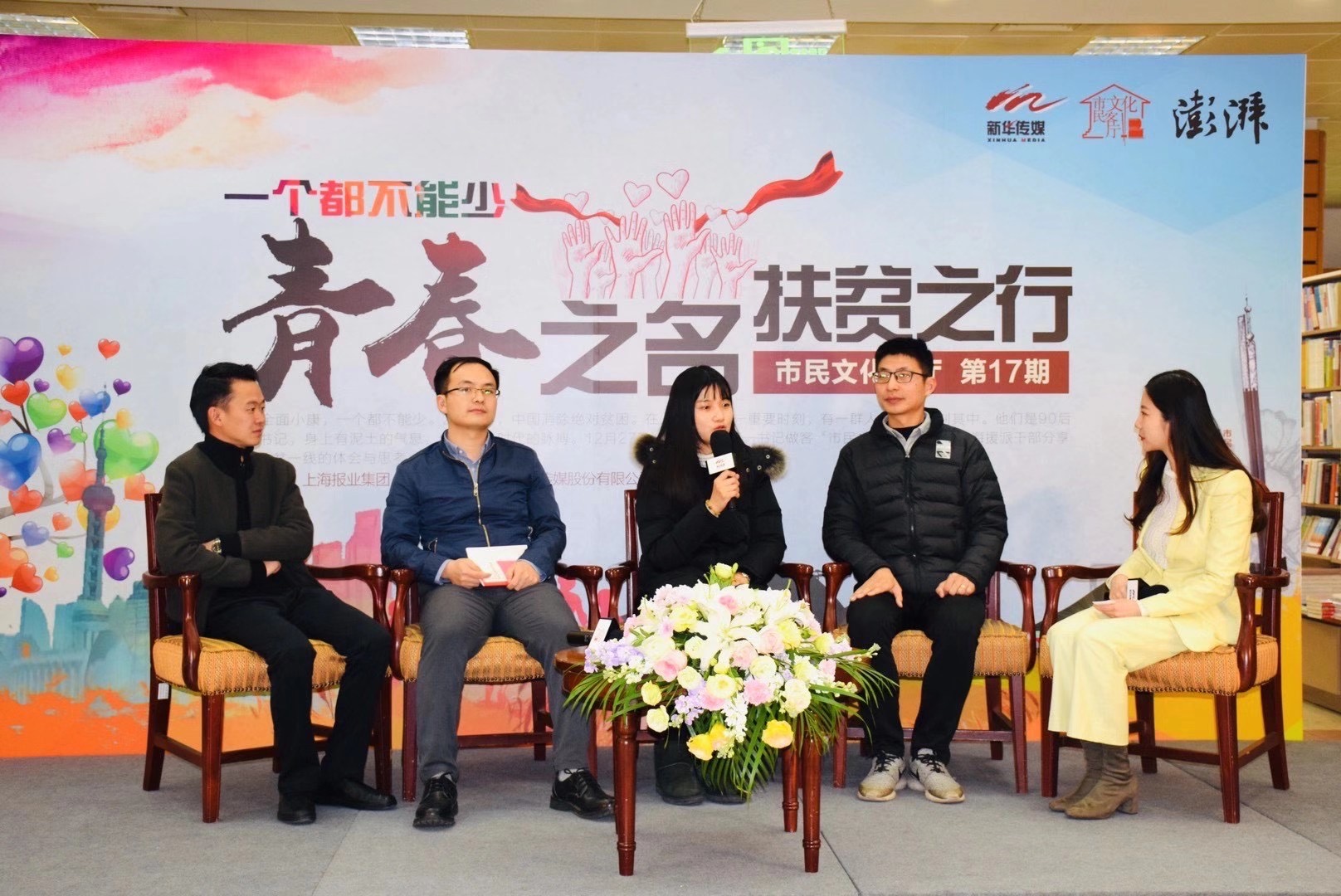 2020年是脱贫攻坚收官之年。12月27日下午,作为上海新华传媒市民文化客厅主题活动,“一个都不能少——青春之名,扶贫之行”图书分享会在上海书城举行。国务院扶贫办开发指导司干部李茂林,和四川省凉山州昭觉县烟草专卖局(分公司)副经理肖晗两位具有代表性的90后扶贫干部来到现场,讲述在扶贫第一线的所见、所想、所作、所为,还原最真实的扶贫日常和背后的酸甜苦辣。