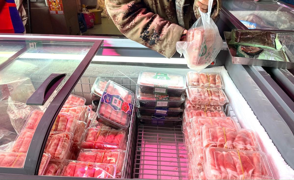 余先生按照朋友的要求将肉切好后装袋,又让店员用电瓶车帮她将肉送到车上,服务也是很到位了。这家店也提供香肠加工服务,肉13元一斤,加工费3元一斤,做一斤香肠的价格是16元。他们会从凌晨两三点忙到下午五点,白天做的主要是散客的生意。