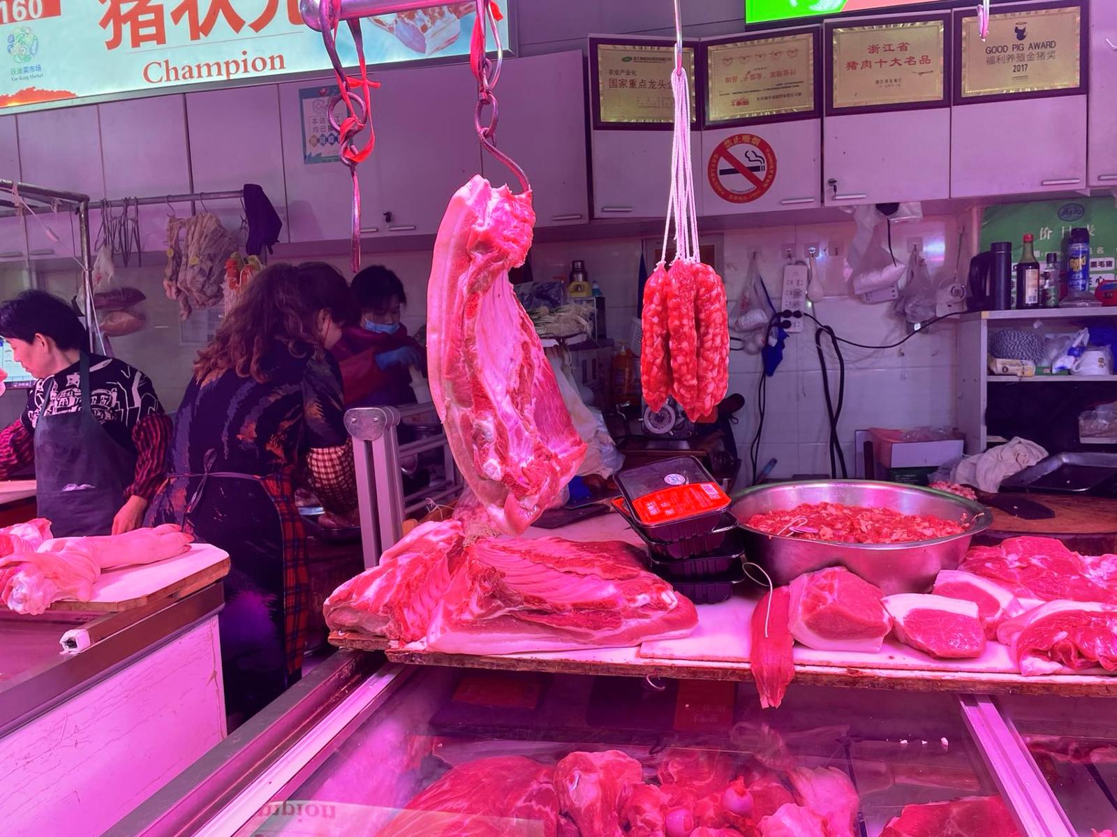 比较下来,上海农产品批发市场的五花肉价格要比菜场里便宜差不多一半,香肠因为肉的品类不同,跟菜场比起来也是便宜了近三分之二。