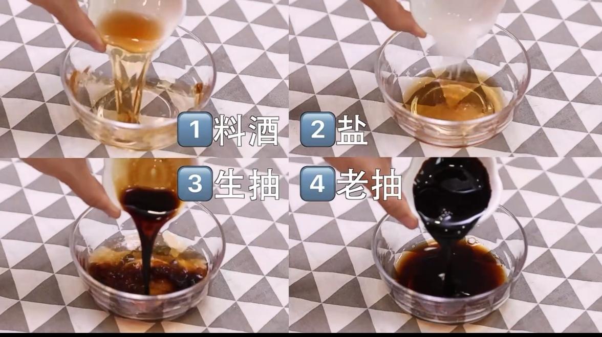 2.碗里放料酒、盐、生抽、老抽,调制碗汁