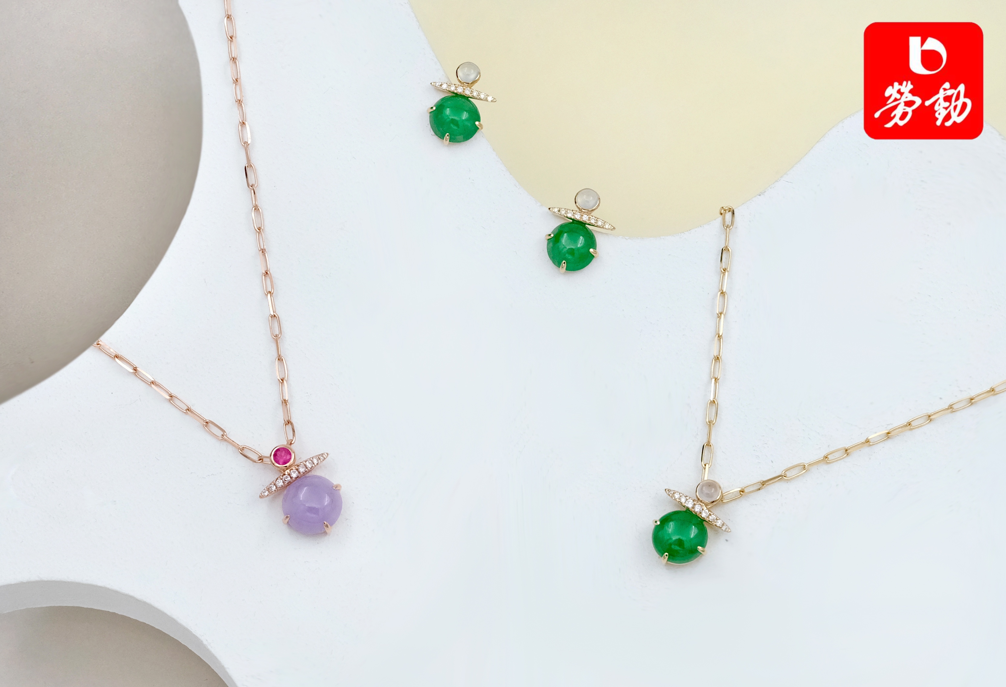 翡翠,自古以来就是女性所钟爱的饰品之一,玲珑婉约,风雅有致,无论是为自己选购还是礼赠友人都尤为适合。老凤祥设计师以“太空之旅”为设计主题,将童趣与优雅结合,以翡翠为原料精工细作而成的项链和耳饰,精美无比。