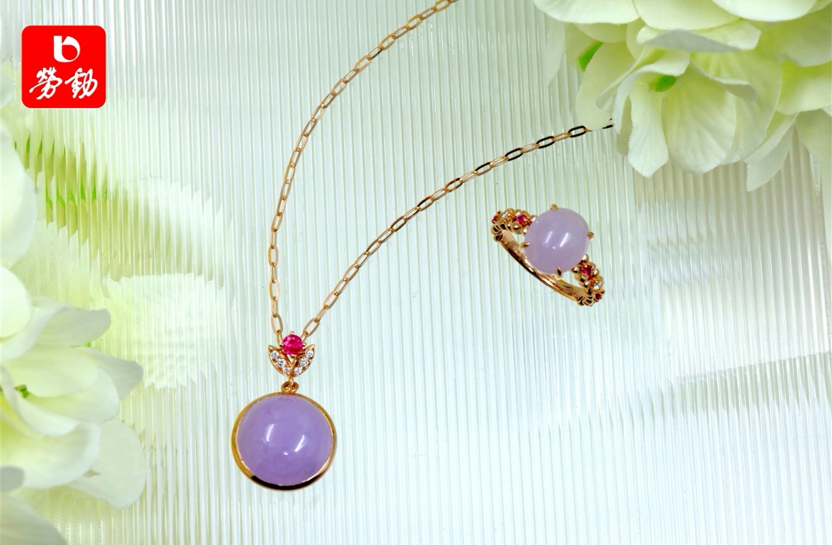 紫翡套件仿佛将那份淡淡的丁香之美凝固成有形之美,让人们在其中感受到深深的爱意。紫翡套件,是老凤祥对传统文化的独特诠释,也是对永恒爱情的美好寄托。