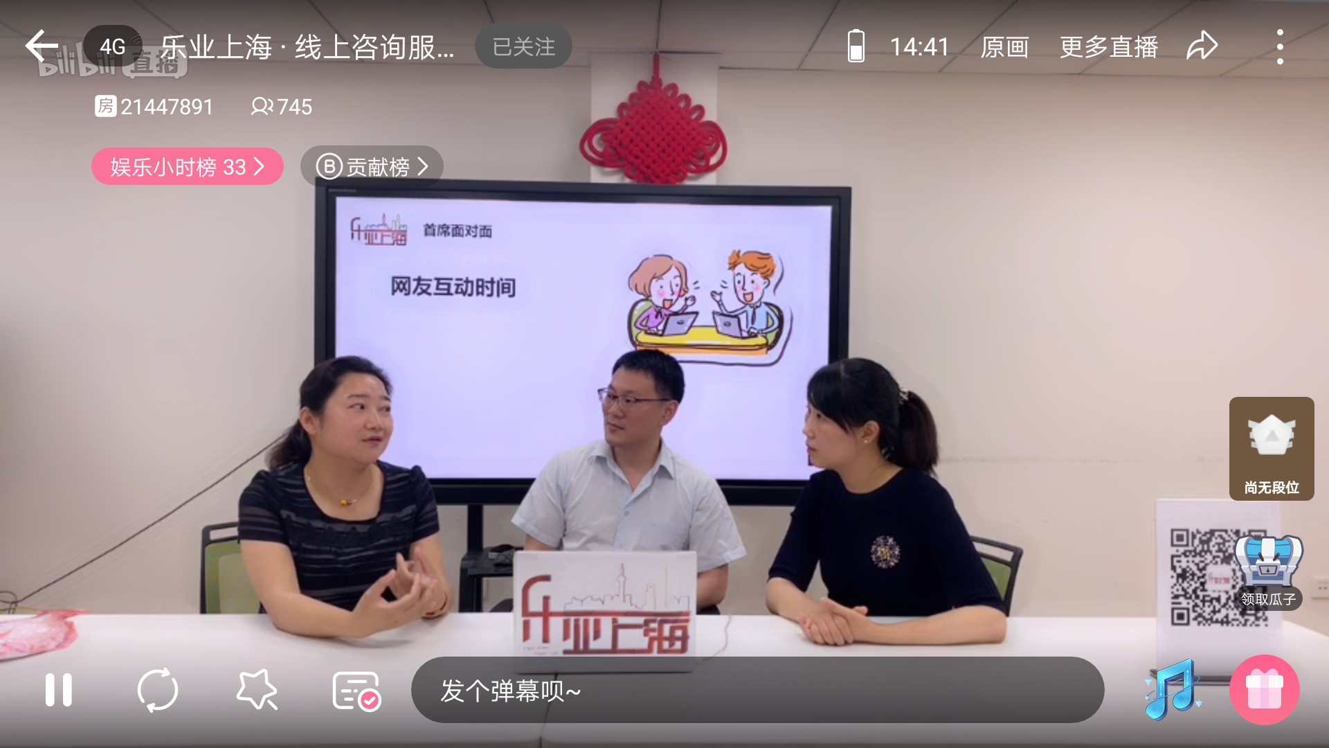 据了解,这是申城就业指导首次尝试网络直播这一新方式。作为主角,来自徐汇区的丁洁、浦东新区的丁宏杰和黄浦区的崇祎娜这三位首席职业指导师,都是国家星级职业指导师,且均已在职业介绍和指导工作方面有着十余年经验,他们纷纷表示,网友互动热情超出想象,效果有些“出乎意料”。