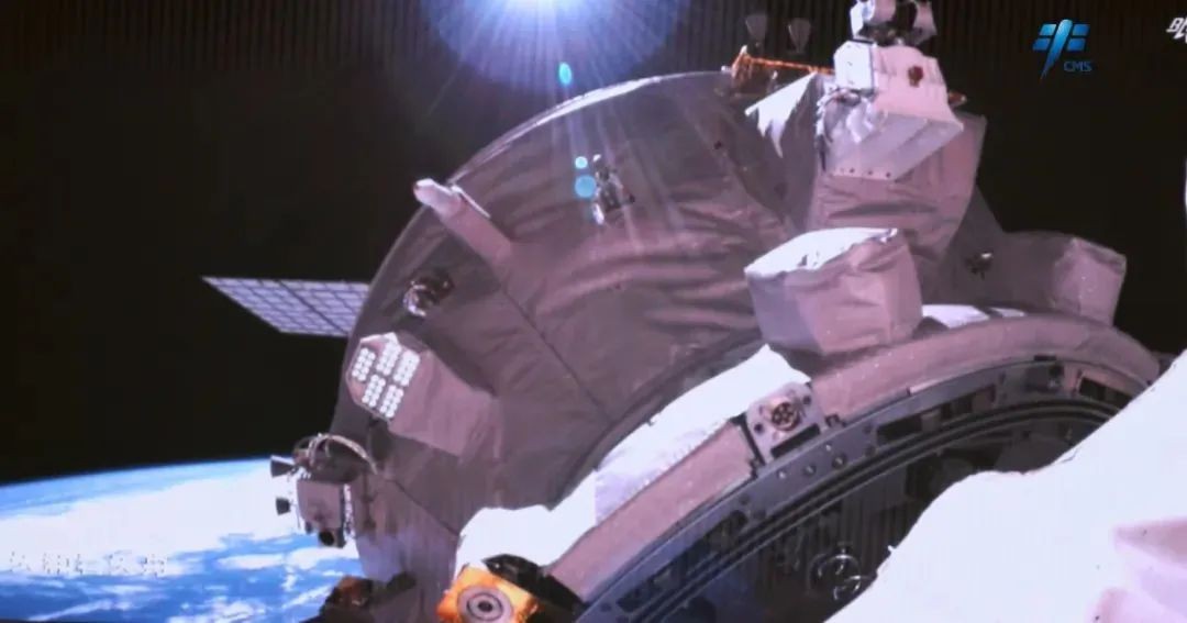 天舟七号货运飞船入轨后,采用3小时快速交会对接方案,对接于空间站核心舱后向端口,形成组合体。