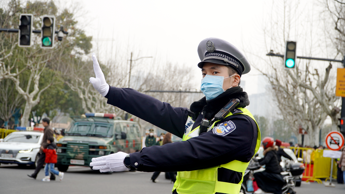 大年初一的早晨,空气透着微微的凉意,在龙华西路天钥桥路口,记者遇到了正在指挥交通的交警陈金恺。身为徐汇交警二大队警长,清晨6点,他便来到了岗位上,确保道路畅通,护航平安。