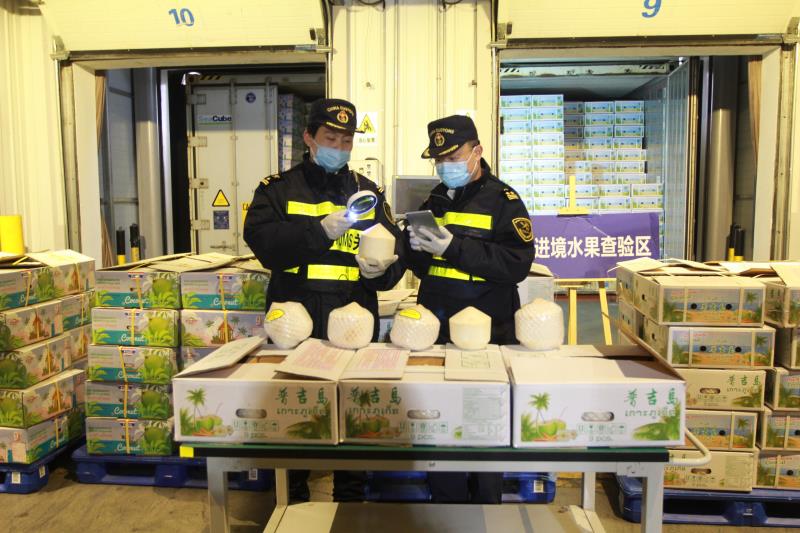 3月19日,上海海关所属外港海关对本月内第12批泰国椰子实施现场检疫,未截获疫情后快速放行。三月以来,外港海关查验泰国椰子11批,重量201吨,直接放行99批,重量2088吨,口岸直接放行的数量占比90%左右,通关效率大幅提升,企业的物流和时间成本大幅降低。