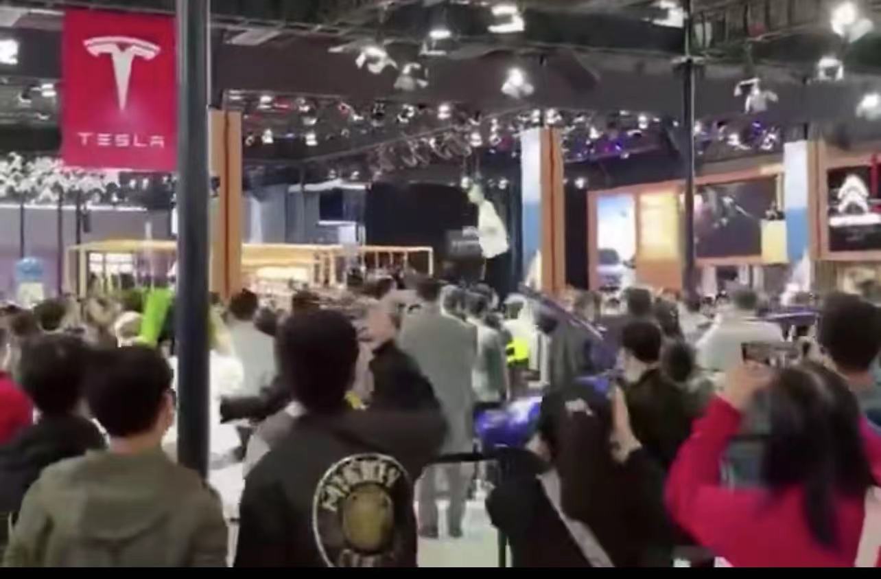 今天下午特斯拉发布微博回应称,该车主通过非常规方式获取证件进入展馆,在展台周围进行直播,露出定制维权T恤,登上车顶大喊。我们在注意到该行为后多次言语劝解,但车主并未停止非理性行为。在与展会主办方协商后,考虑到该行为严重影响公共秩序,主办方协调公安执法人员劝离车主。