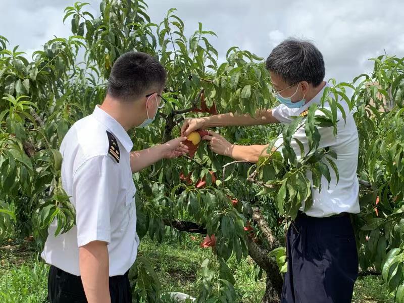 为了给黄桃出口做好准备,奉贤海关第一时间组织相关专业人员与企业对接,多次实地调研桃园及包装厂情况,了解企业需求,指导企业做好软硬件设施,帮助企业提升质量安全管理水平,完成出境水果果园/包装厂注册登记;充分发挥职能与技术优势,深入果园一线指导病虫害防控、农用化学品使用等,筑牢出境水果质量和安全防线。