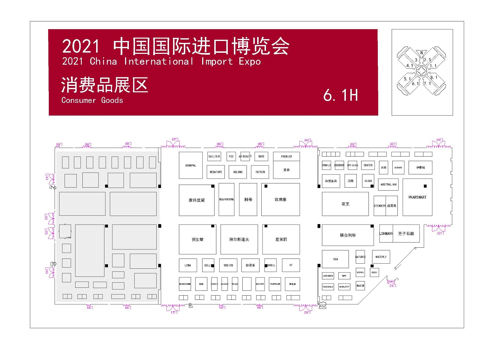 第四届进博会企业商业展分馆展位图陆续公布。记者了解到。目前公布的首批展位图,涵盖食品及农产品、技术装备、消费品、医疗器械及医药保健、服务贸易等展区。