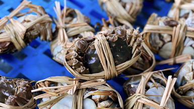 但最近两年,螃蟹上市后,每晚6点、8点,洪泽当地的快递网点就会出现堆积成山的包裹,大卡车一刻不停地往外发货。到了那时,连捆蟹工人都会变得十分抢手,人工费也水涨船高,达到一只蟹一块钱的水平。“去年,我们市场上有一对老夫妻,一天靠捆蟹就赚了接近3万元。”安中达说。