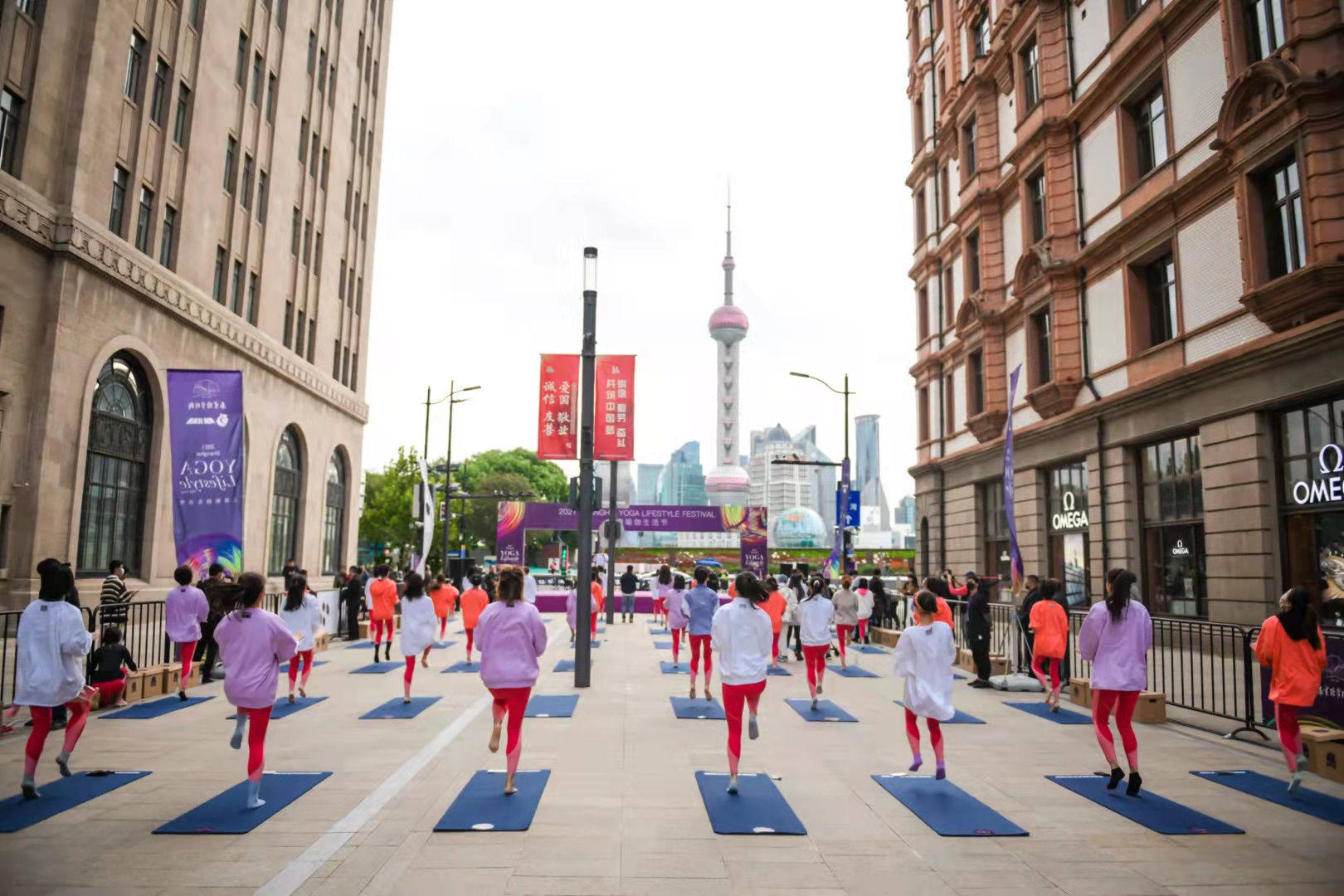 10月17日早晨七点,南京路步行街上,外滩万国建筑博览群间,一场别开生面的百人瑜伽在此上演,让“中华商业第一街”再添年轻力。