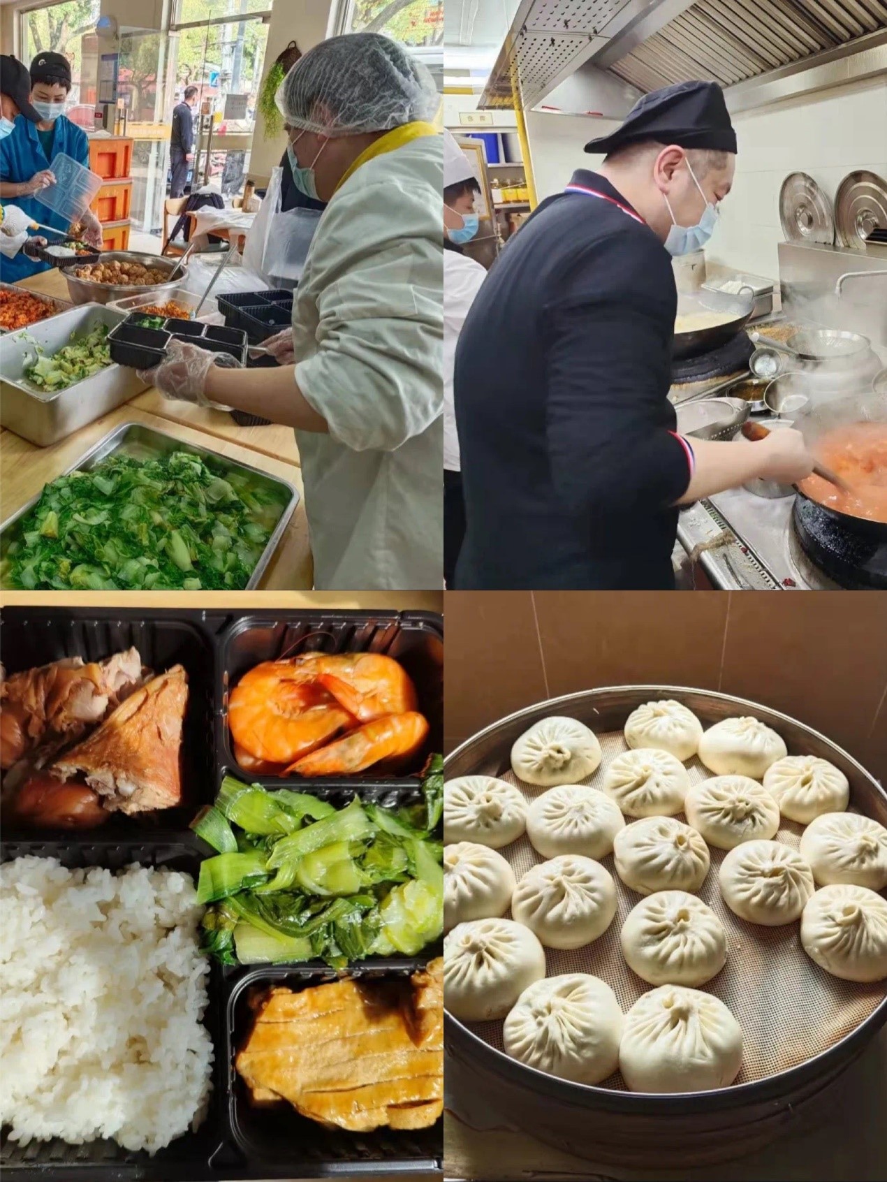 同时,为了让防疫人员没有后顾之忧,这家社区食堂所属的运营方上海缘源餐饮紧急调配工作人员为防疫人员准备一日三餐,日均提供2000份营养餐食,每天凌晨缘社区食堂厨房里,忙碌的身影成为防疫一线的坚强后方支援。“不仅能吃出‘家的味道’,最重要还是放心,”一位在封控区内吃到社区食堂饭菜的“大白”感慨道。