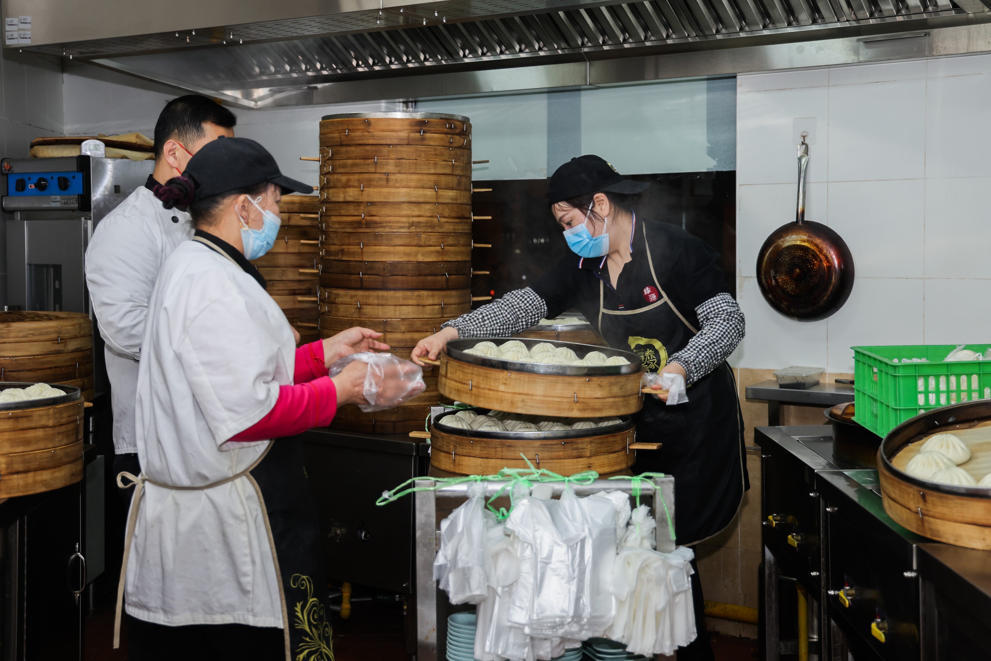 (沪东社区长者食堂 工作人员凌晨4点多开始忙碌备餐。)