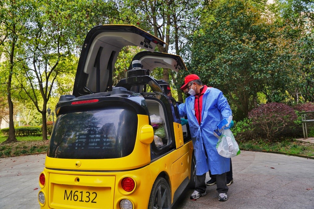 据悉,美团自动配送车除了为买菜站点提供有效运力外,还会积极配合社区内部的志愿者,共同进行物资配送工作。“我们已经提前跟小区志愿者做了开关车门等操作和消杀标准的培训,目前来回一趟只需要10分钟,最远的楼至少节省20分钟配送时间。”余智说。