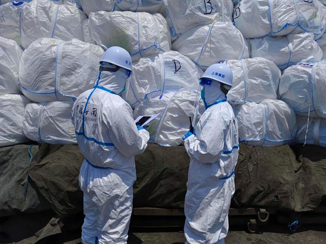 6月8日记者从上海海关获悉,近日,黄浦江畔的龙吴码头,4台船吊起重同时开足马力,卸下1.1万吨进口锂原料。已经完成全部通关手续的货主单位,早已安排运输车辆等候在码头前沿区域,卸货、提离“无缝”衔接,实现了“船车直连”和“无感通关”。