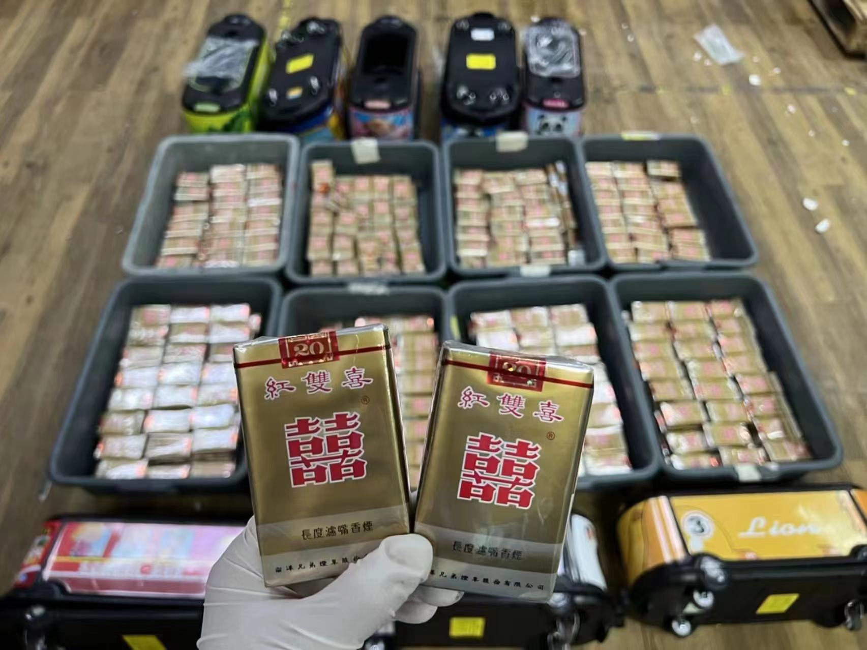 经过海关关员开箱彻查,1批申报品名为“枕套、装饰画”的快件内有装饰画3副,重量异常,摇晃内有异物感,将装饰画破开,发现画内均藏有“天下秀”香烟,共计90包1800支;在另1批申报品名为“儿童脚踏车”的快件内有塑料“大肚状”儿童玩具车8个,内部中空,有夹藏嫌疑,经对玩具车拆分后,发现玩具车内部均夹藏“红双喜”香烟,共计560包11200支。目前,两批次快件已移送相关部门做后续处置。
