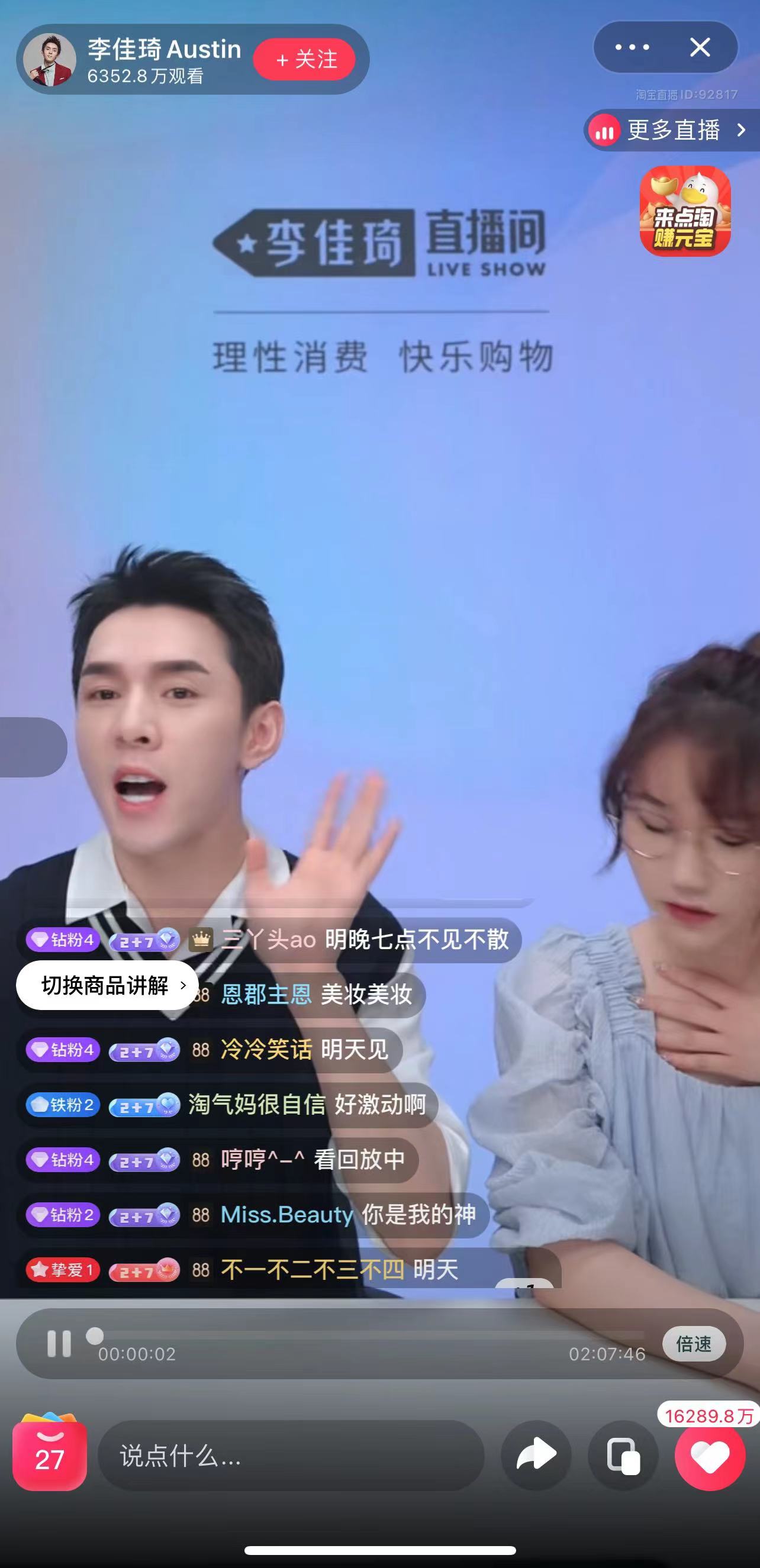 从昨晚的直播间效果看,李佳琦回归后的首场直播打出“理性消费 快乐购物”字样,购物页面显示有美妆个护、生活快消、时尚服饰三个分类。截至结束直播时,李佳琦直播间观看量超过6000万。当晚9:10分左右,李佳琦表示,此次准备很匆促,很多货品都备货不足,数量很少,导致体验不好,对此他表示抱歉,因此提前结束直播,称21日晚7点再与大家相聚直播间。