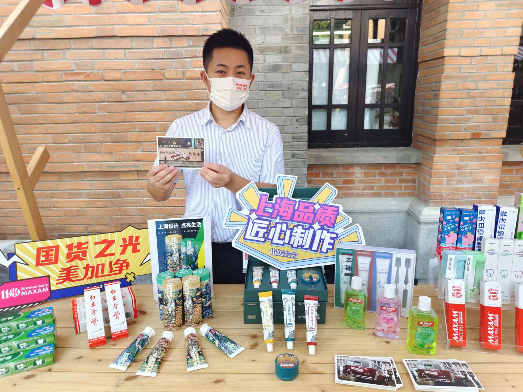 除了参观游览,在品牌馆门前花园内,还有部分老字号品牌以快闪店和集市花车形式,向消费者推出经典和最新产品。在这里,可以找到如:美加净日化在刚刚落幕的2022世界设计之都大会上获得新一轮“上海设计100+”殊荣的虎啸龙吟系列牙膏;开开集团与上海气象博物馆联手推出的联名款“旗开得胜”外滩百年旗语文创丝巾等。上海商业航母百联集团旗下三联公司的老字号品牌茂昌眼镜、吴良材眼镜以及焕新品牌gozem高择通过活动现场展台设计,展现各自的风格理念,更有品牌产学研成果——茂昌眼镜“风华正茂”系列及gozem高择创新IP首发亮相。