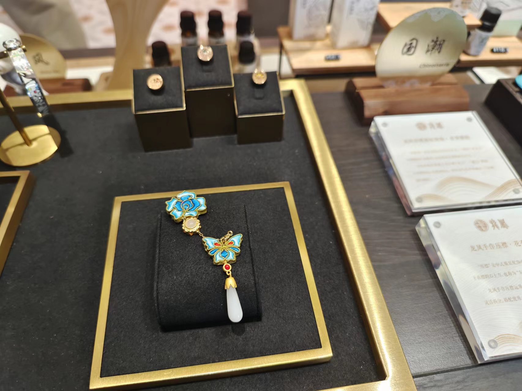 如“开开集团老字号品牌伴手礼首发集合店”里,一站式可打卡种草开开、雷允上、亨生、蓝棠-博步、鸿翔、龙凤、大美华这些老字号品牌的首发伴手礼。龙凤的新中式旗袍元素人偶定制款、手作压襟·花香蝶舞一展中式服装配饰中的经典美物。开开双面玲珑红木书签、“旗开得胜”外滩百年旗语文创丝巾、国粹·京剧脸谱袖钉礼盒、雷允上的允上生活·草木香薰伴手礼概念款等精致伴手礼,都可觅得。