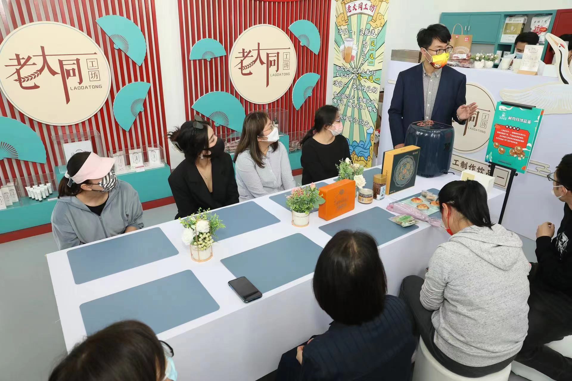 本次活动中,有网红青团鼻祖之称的杏花楼“咸蛋黄肉松青团”、“万物皆可糟”的邵万生带来糟香八宝饭、主妇必入新雅粤菜馆爆款预制菜系列、蔡同德堂的秋冬养生必备膏方……这些耳熟能详的老字号们,不仅带来了世代流传的经典口味,更精选各色新潮有趣的网红新品,在这个秋末冬初,为楼宇白领送上温暖。现场,不仅有众多老字号新品展示、美味试吃,主办方还精心推出特色DIY活动。