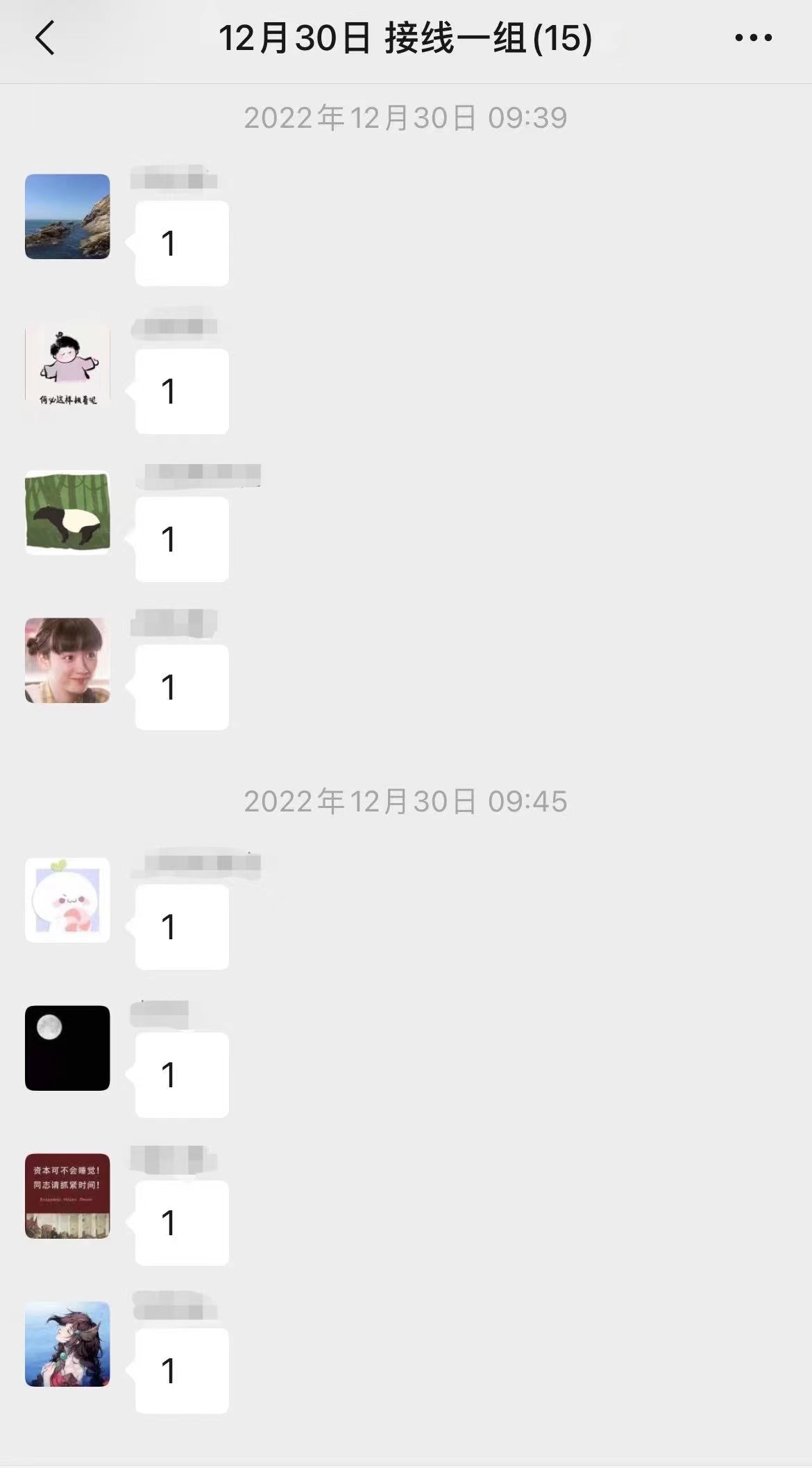 (居家坐席们在工作群中“扣1”接线。)