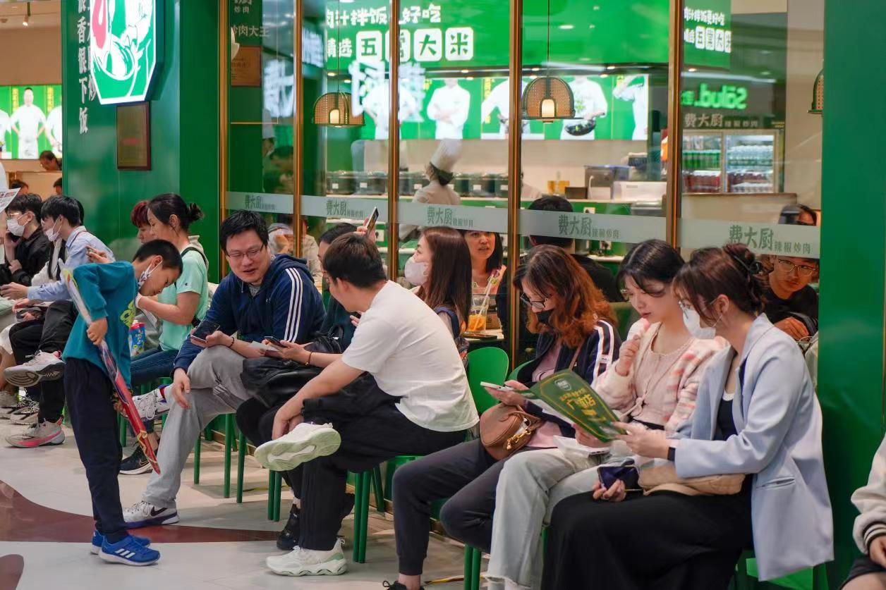 头图:顾客在费大厨辣椒炒肉上海长宁龙之梦店排队。费大厨供图