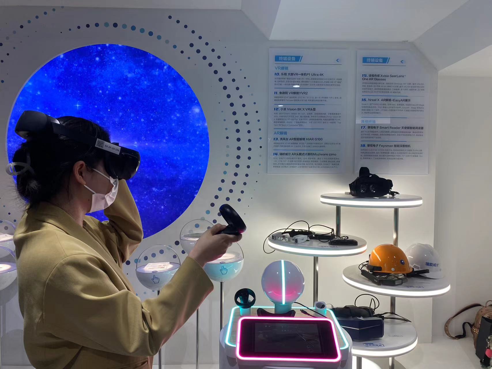 头图为市民正在体验YVR 2眼镜。李美慧 摄影